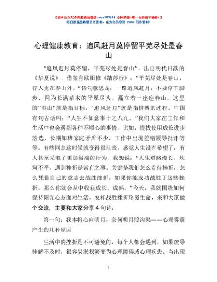 / 心理健康教育:追风赶月莫停留 平芜尽处是春山