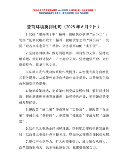 / 营商环境类排比句(2025年6月9日)
