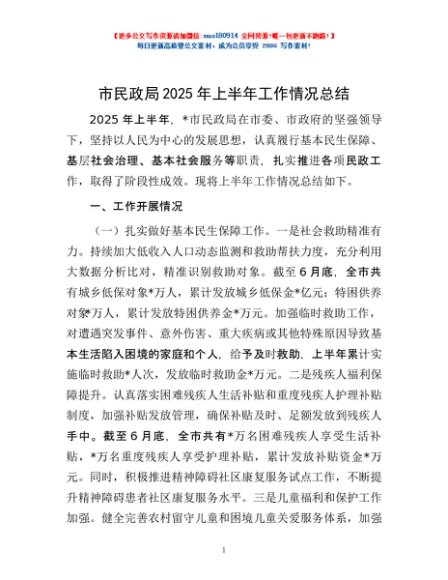/ 市民政局2025年上半年工作情况总结