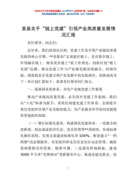 / 某县关于“链上党建”引领产业高质量发展情况汇报