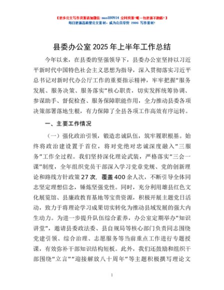 / 县委办公室2025年上半年工作总结