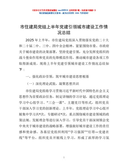 / 市住建局党组上半年党建引领城市建设工作情况总结