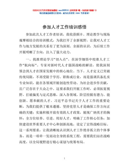 / 参加人才工作培训感悟