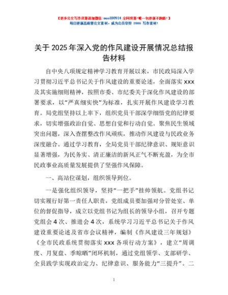 / 关于2025年深入党的作风建设开展情况总结报告材料