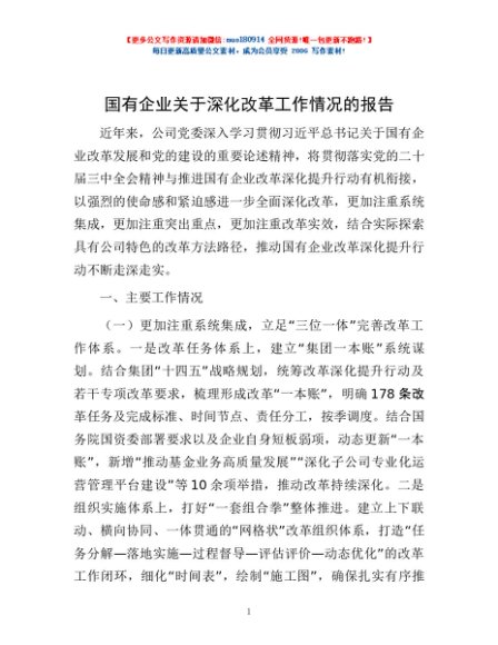 / 国有企业关于深化改革工作情况的报告