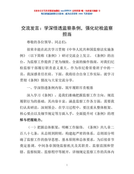 / 交流发言:学深悟透监察条例,强化纪检监察担当