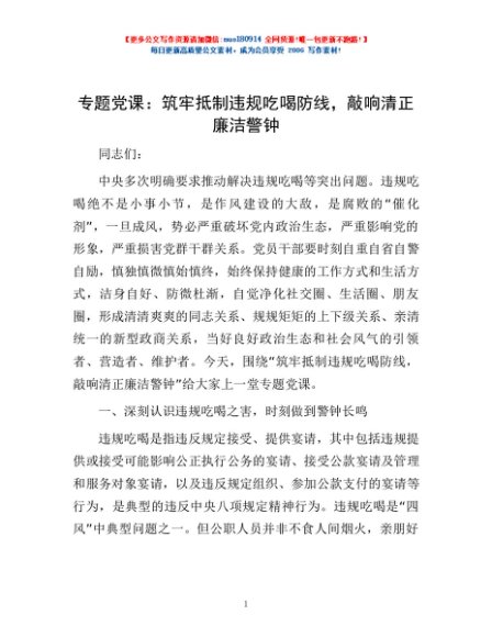 / 专题党课:筑牢抵制违规吃喝防线,敲响清正廉洁警钟