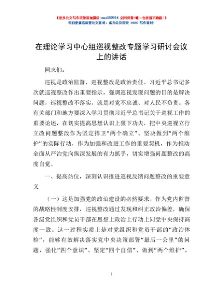 / 在理论学习中心组巡视整改专题学习研讨会议上的讲话