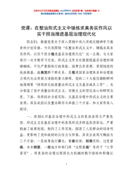 / 党课:在整治形式主义中锤炼求真务实作风 以实干担当推进基层治理现代化