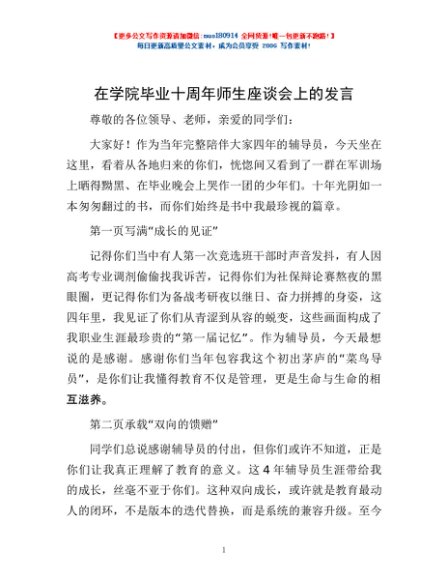 / 在学院毕业十周年师生座谈会上的发言