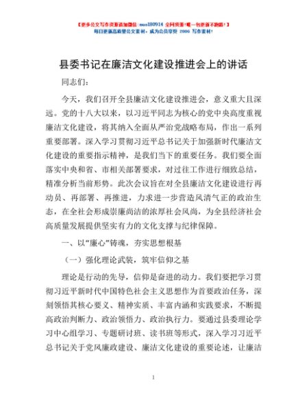 / 县委书记在廉洁文化建设推进会上的讲话