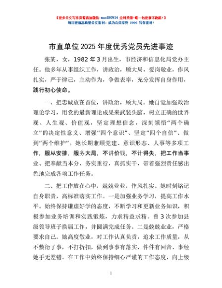 市直单位2025年度优秀党员先进事迹