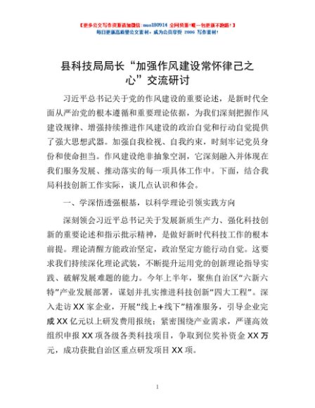 / 县科技局局长“加强作风建设 常怀律己之心”交流研讨