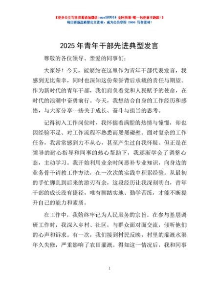 / 2025年青年干部先进典型发言