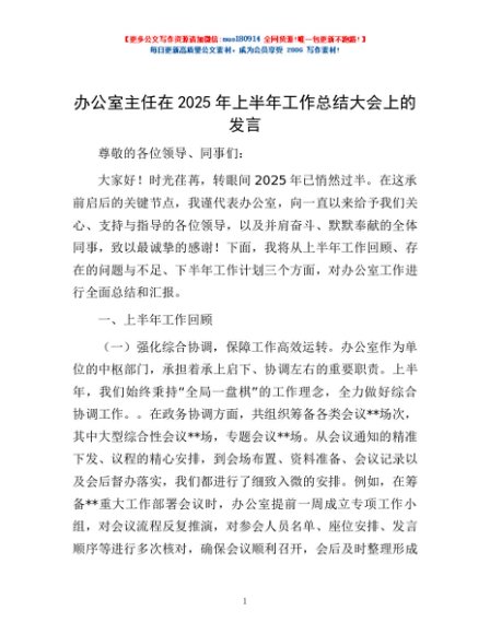 / 办公室主任在2025年上半年工作总结大会上的发言