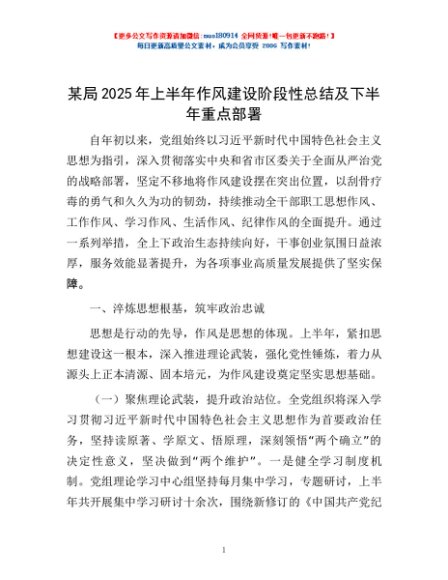 / 某局2025年上半年作风建设阶段性总结及下半年重点部署