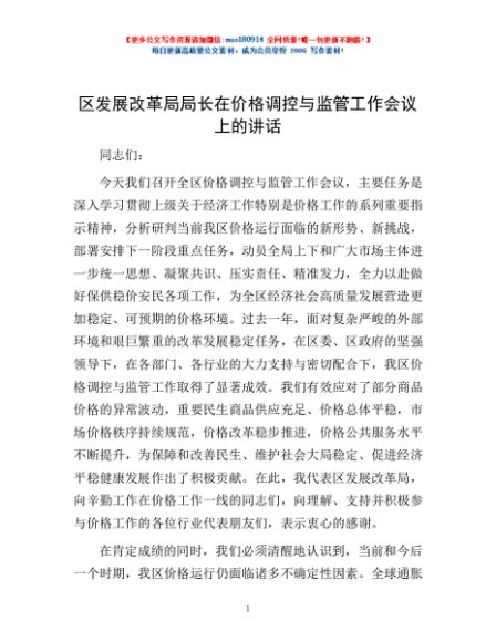 / 区发展改革局局长在价格调控与监管工作会议上的讲话