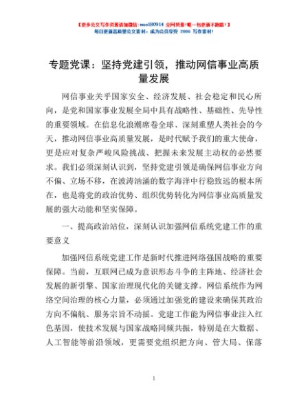 专题党课:坚持党建引领,推动网信事业高质量发展