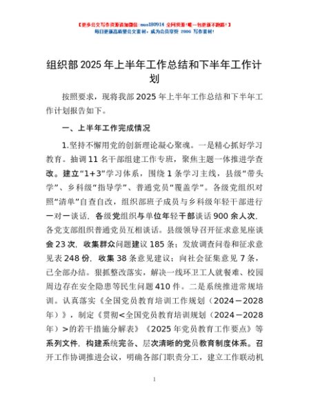 / 组织部2025年上半年工作总结和下半年工作计划