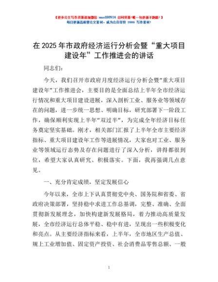 / 在2025年市政府经济运行分析会暨“重大项目建设年”工作推进会的讲话