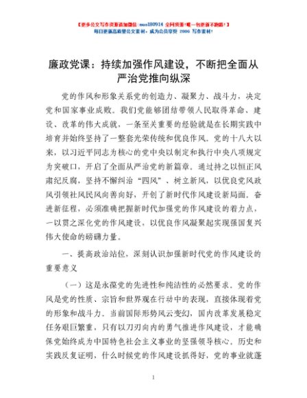 / 廉政党课:持续加强作风建设,不断把全面从严治党推向纵深