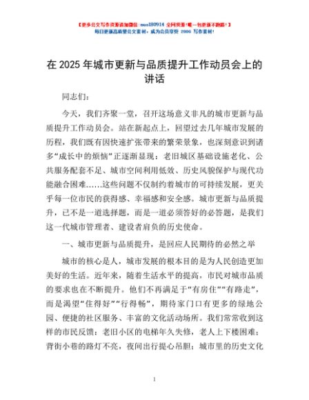 / 在2025年城市更新与品质提升工作动员会上的讲话