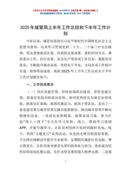 / 2025年城管局上半年工作总结和下半年工作计划