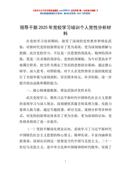 / 领导干部2025年党校学习培训个人党性分析材料