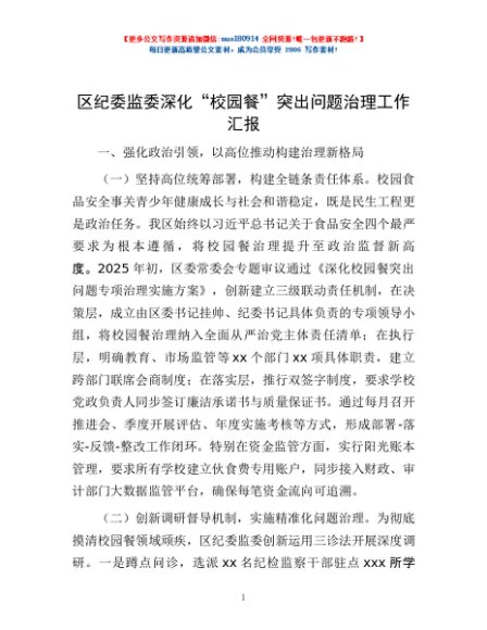 / 区纪委监委深化“校园餐”突出问题治理工作汇报