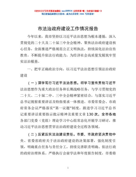 / 市法治政府建设工作情况报告