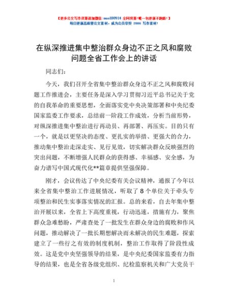/ 在纵深推进集中整治群众身边不正之风和腐败问题全省工作会上的讲话