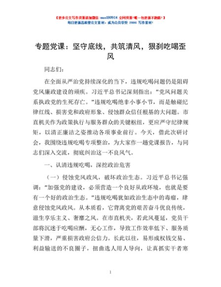 / 专题党课:坚守底线,共筑清风,狠刹吃喝歪风