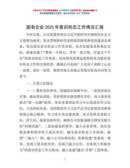 / 国有企业2025年意识形态工作情况汇报