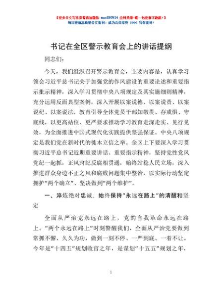 / 书记在全区警示教育会上的讲话提纲