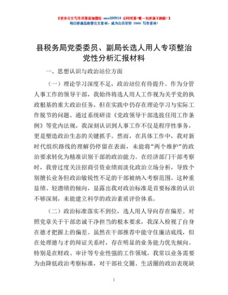 / 县税务局党委委员、副局长选人用人专项整治党性分析汇报材料