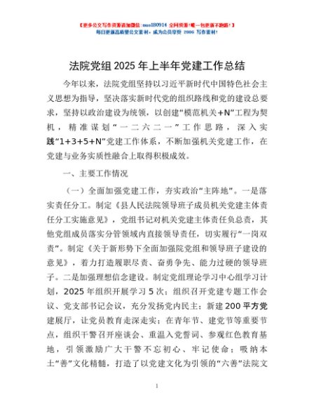 / 法院党组2025年上半年党建工作总结