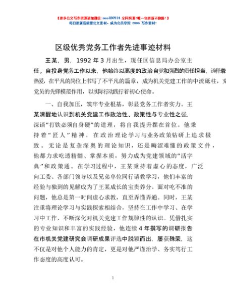 / 区级优秀党务工作者先进事迹材料