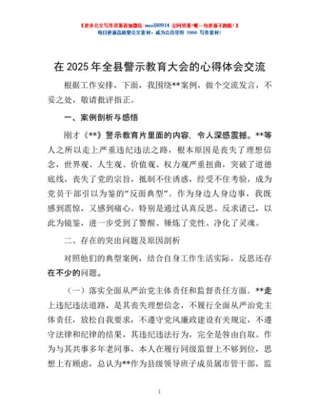 / 在2025年全县警示教育大会的心得体会交流