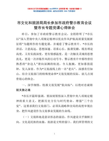 / 市文化和旅游局局长参加市政府警示教育会议暨市长专题党课心得体会
