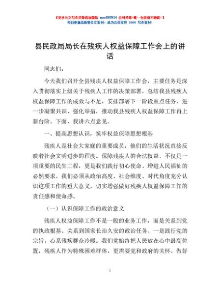 / 县民政局局长在残疾人权益保障工作会上的讲话