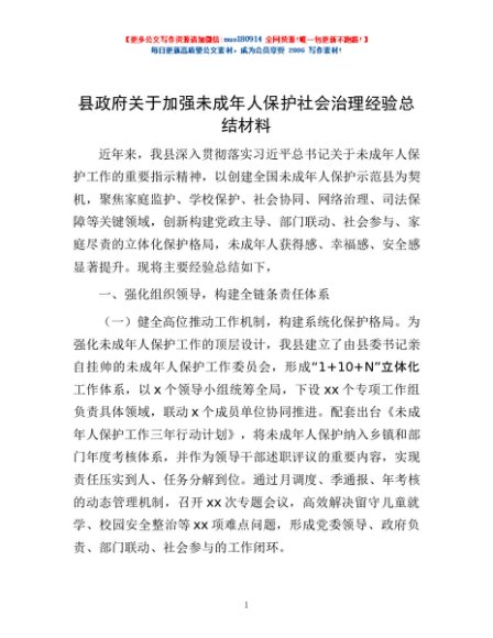 / 县政府关于加强未成年人保护社会治理经验总结材料