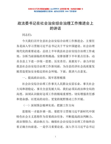 / 政法委书记在社会治安综合治理工作推进会上的讲话