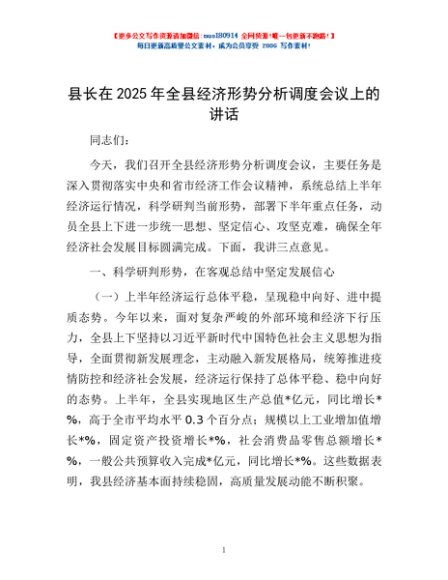 / 县长在2025年全县经济形势分析调度会议上的讲话