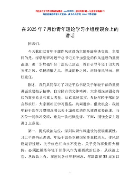 / 在2025年7月份青年理论学习小组座谈会上的讲话