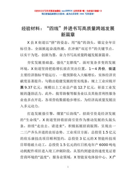 / 经验材料:“四线”并进 书写高质量跨越发展新篇章