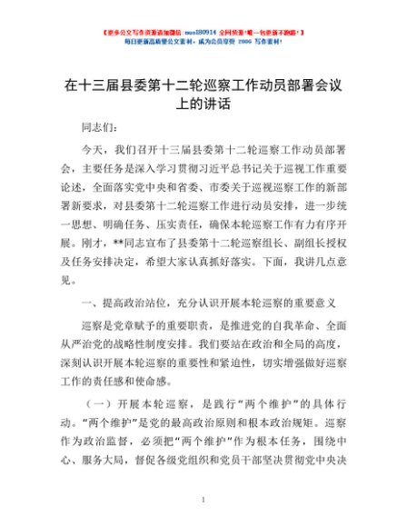 / 在十三届县委第十二轮巡察工作动员部署会议上的讲话