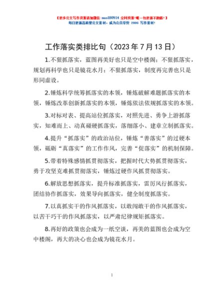 / 工作落实类排比句(2023年7月13日)