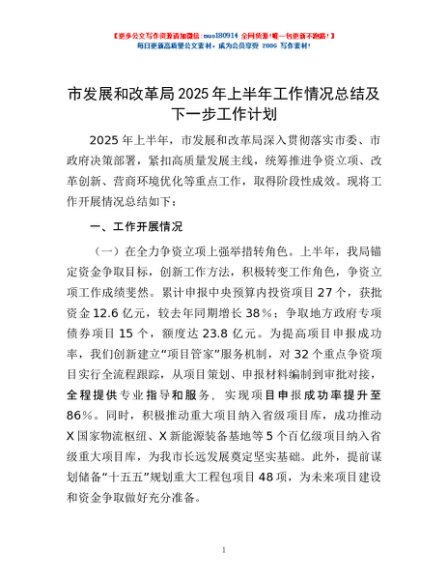 / 市发展和改革局2025年上半年工作情况总结及下一步工作计划