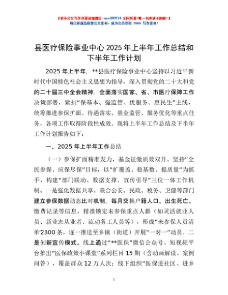 / 县医疗保险事业中心2025年上半年工作总结和下半年工作计划