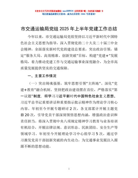/ 市交通运输局党组2025年上半年党建工作总结